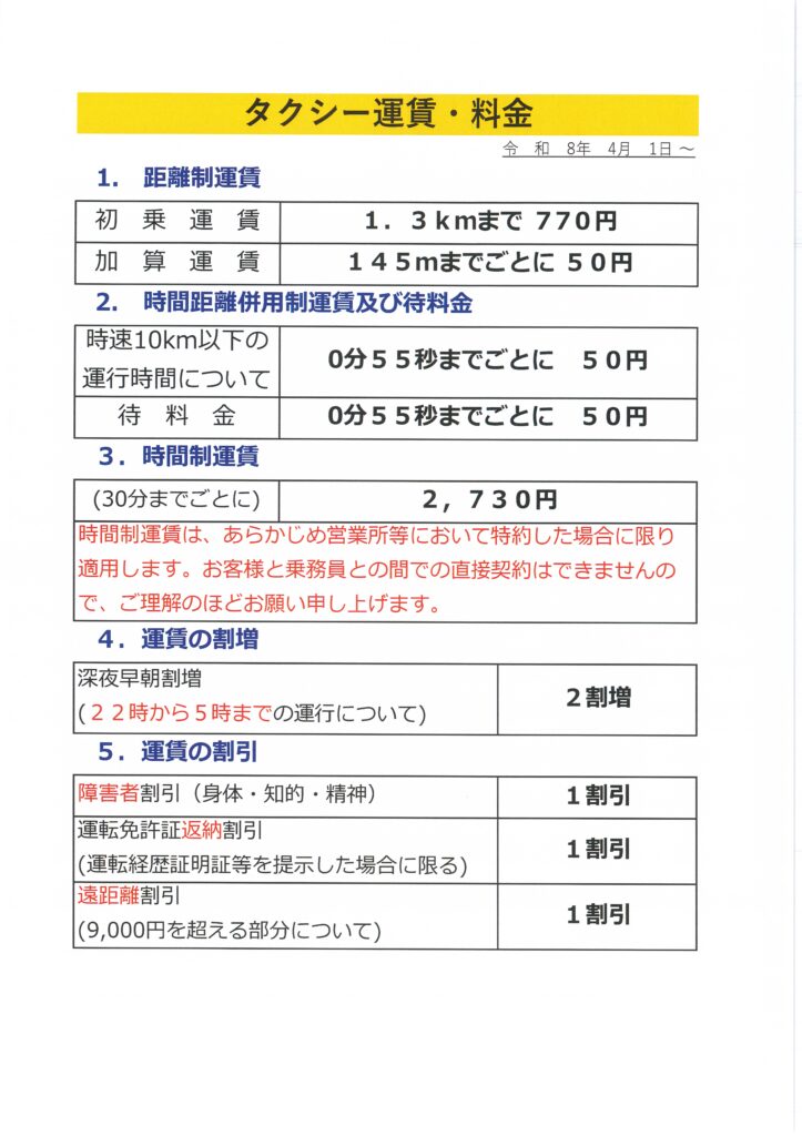 タクシー運賃